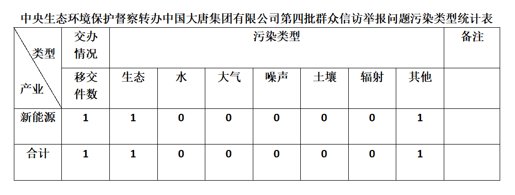 2025年6月6日,中央第七生態(tài)環(huán)境保護(hù)督察組向中國大唐集團(tuán)有限公司移交第四批群眾信訪舉報(bào)件,共計(jì)1件,為來信舉報(bào),涉及生態(tài)問題1個(gè)、其他問題1個(gè)。所有舉報(bào)件辦理工作已第一時(shí)間進(jìn)入調(diào)查核實(shí)辦理程序,辦理情況將按照相關(guān)要求反饋督察組,并及時(shí)向社會(huì)公開。