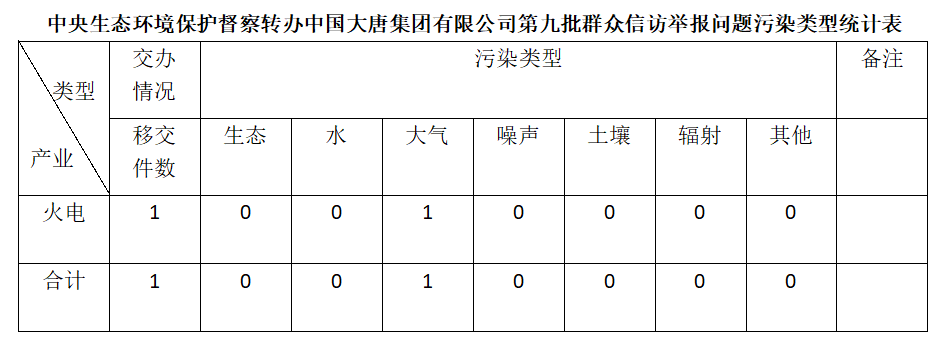2025年6月12日,中央第七生態(tài)環(huán)境保護(hù)督察組向中國大唐集團(tuán)有限公司移交第九批群眾信訪舉報(bào)件,共計(jì)1件,為來電舉報(bào),涉及大氣問題1個(gè)。所有舉報(bào)件辦理工作已第一時(shí)間進(jìn)入調(diào)查核實(shí)辦理程序,辦理情況將按照相關(guān)要求反饋督察組,并及時(shí)向社會公開。